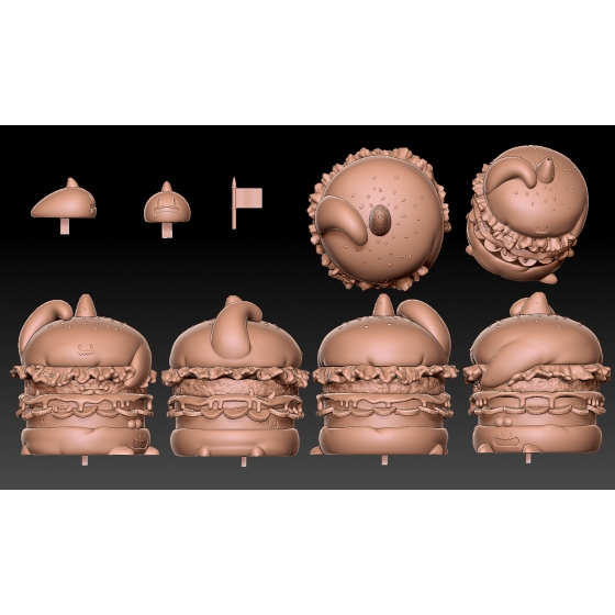 把他們的漢堡公仔平面插畫建成3D模型並且拆件