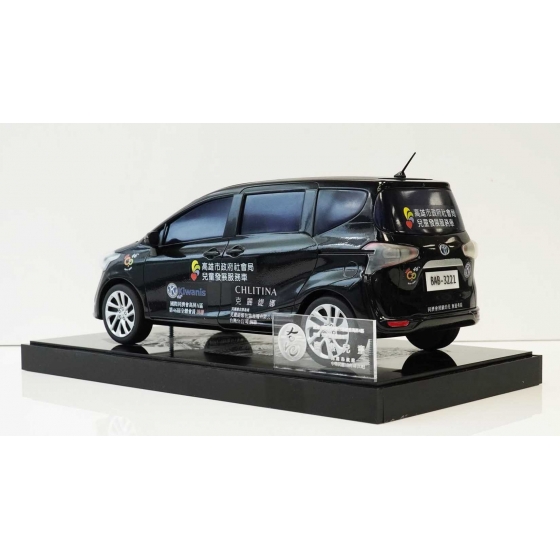 高雄市政府社會局兒童褔利服務中心委託製作的紀念品,製作30公分寬、全黑的Toyota Sienta。