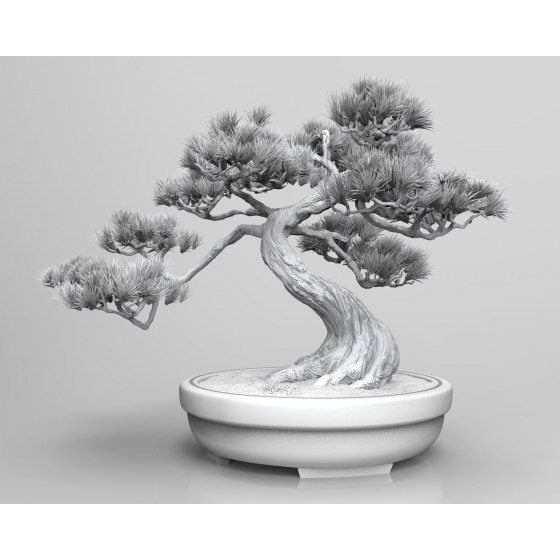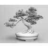 希望可以製作一組有東方味道的盆栽模型,搭配煙霧與松柏的造型,達到展覽情境的需求
