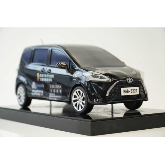 高雄市政府社會局兒童褔利服務中心委託製作的紀念品,製作30公分寬、全黑的Toyota Sienta。